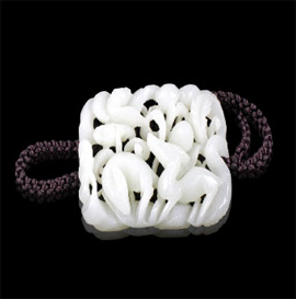 和田白玉牛頭紋掛件